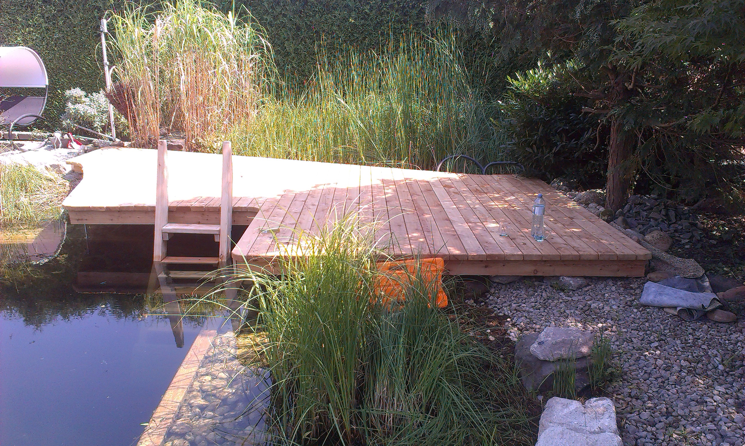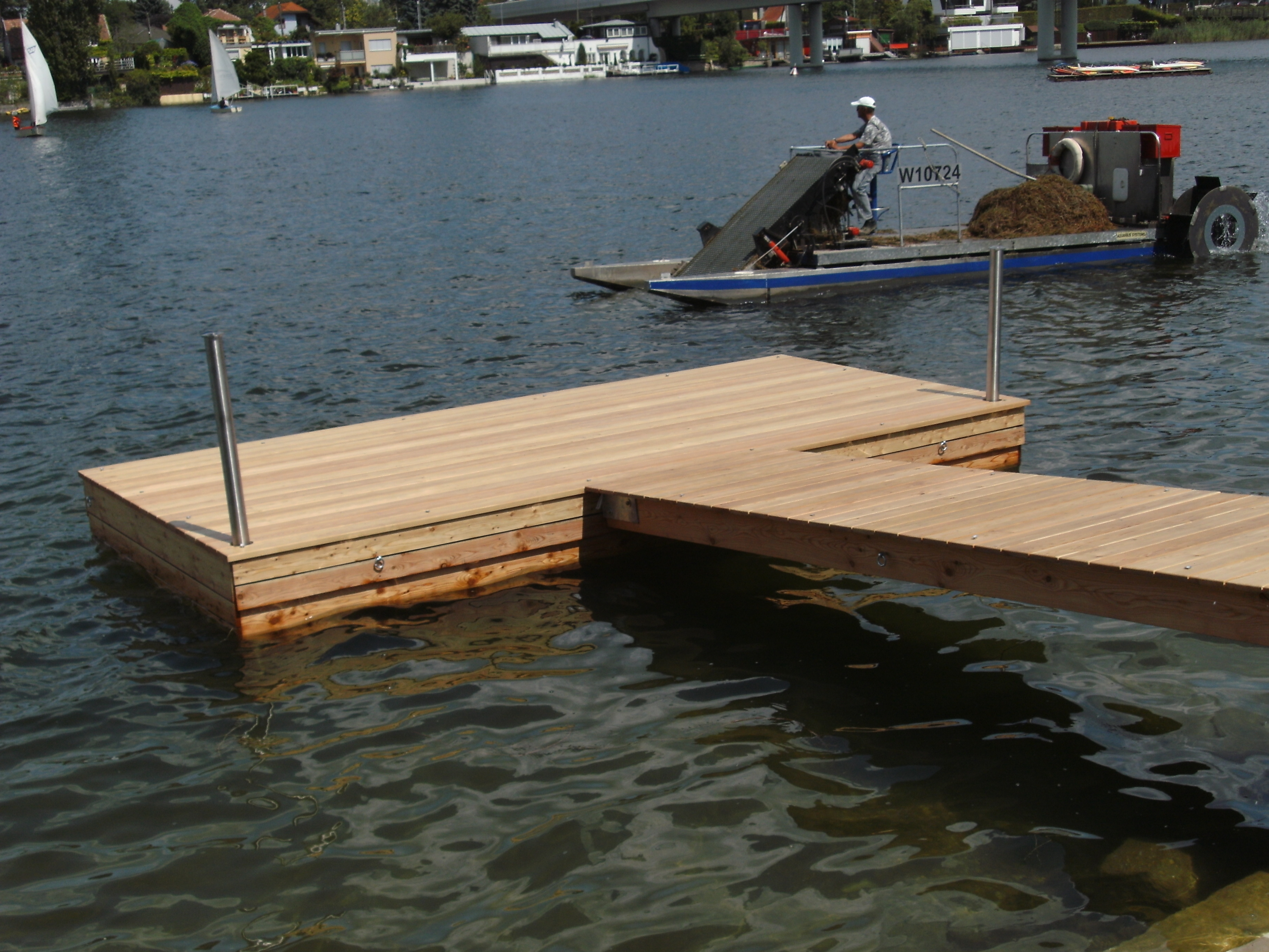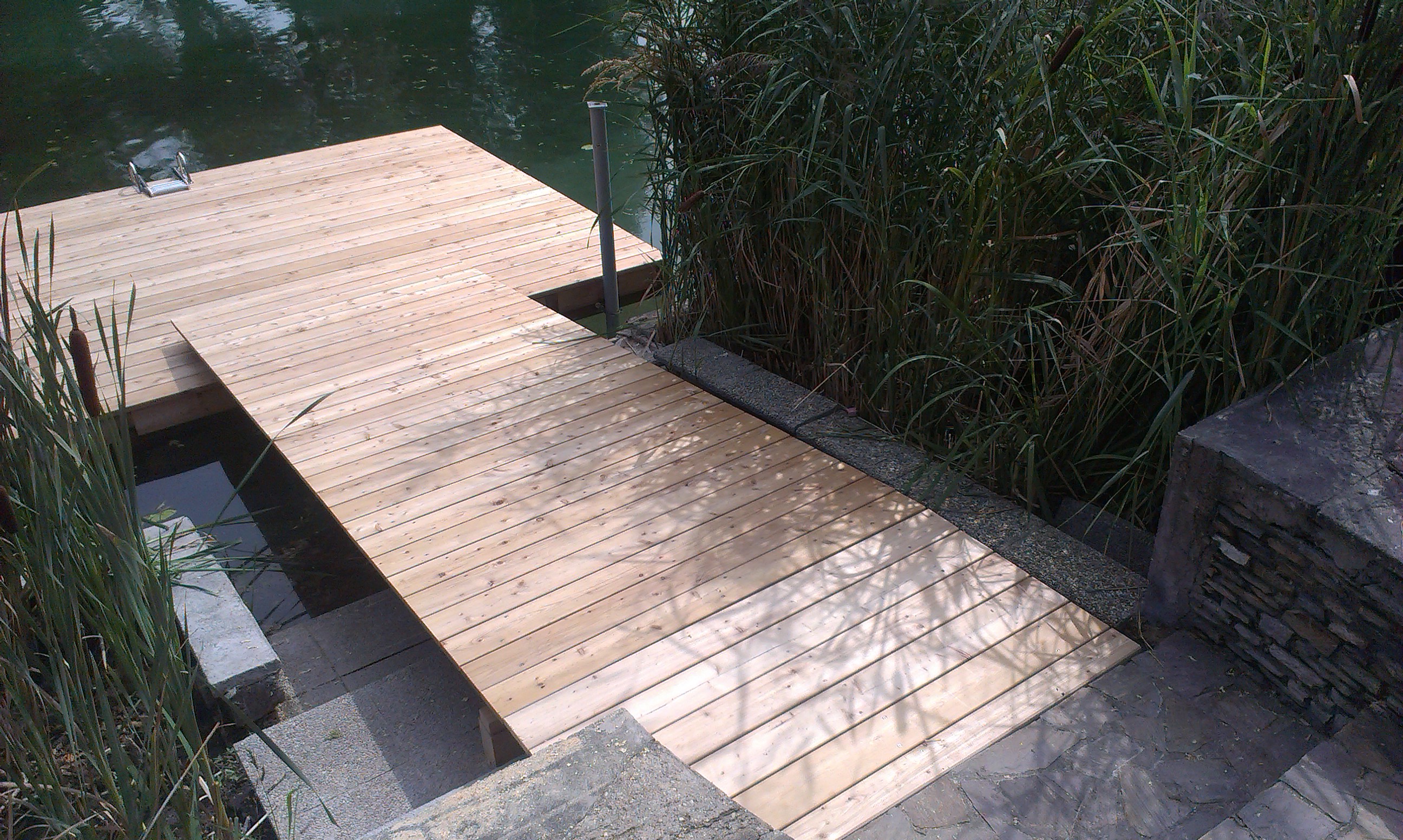Wir führen eine Vielzahl hochwertiger Stegbau- und Terassenbauarbeiten aus. Besonders im Bau von Schwimm- und Badestegen greifen wir auf langjährige Erfahrung und viel Know-how zurück. Unser bewährtes Baukastenprinzip verleiht den Holzkonstruktionen nicht nur eine außerordentliche Stabilität und Tragfähigkeit, sondern erhöht auch ihre Widerstandskraft bei starker mechanischer Beanspruchung. Das Stegsystem passt sich perfekt an den wechselnden Wasserstand an und ermöglicht ein bequemes Anlegen der Boote. Ob direkter Wasserzugang, Anlegestelle oder schwimmende Badeinsel, die individuelle Planung und Bauweise eröffnet viel Raum zur kreativen Gestaltung.